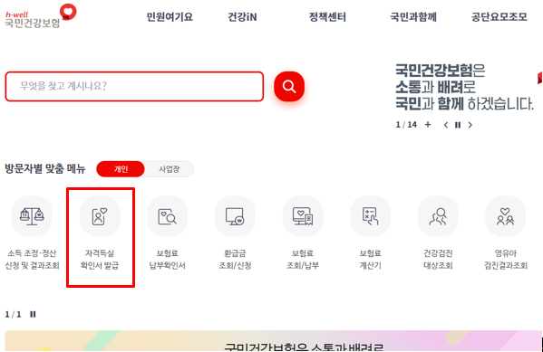 1. 국민건강보험 사이트에 접속해주세요.