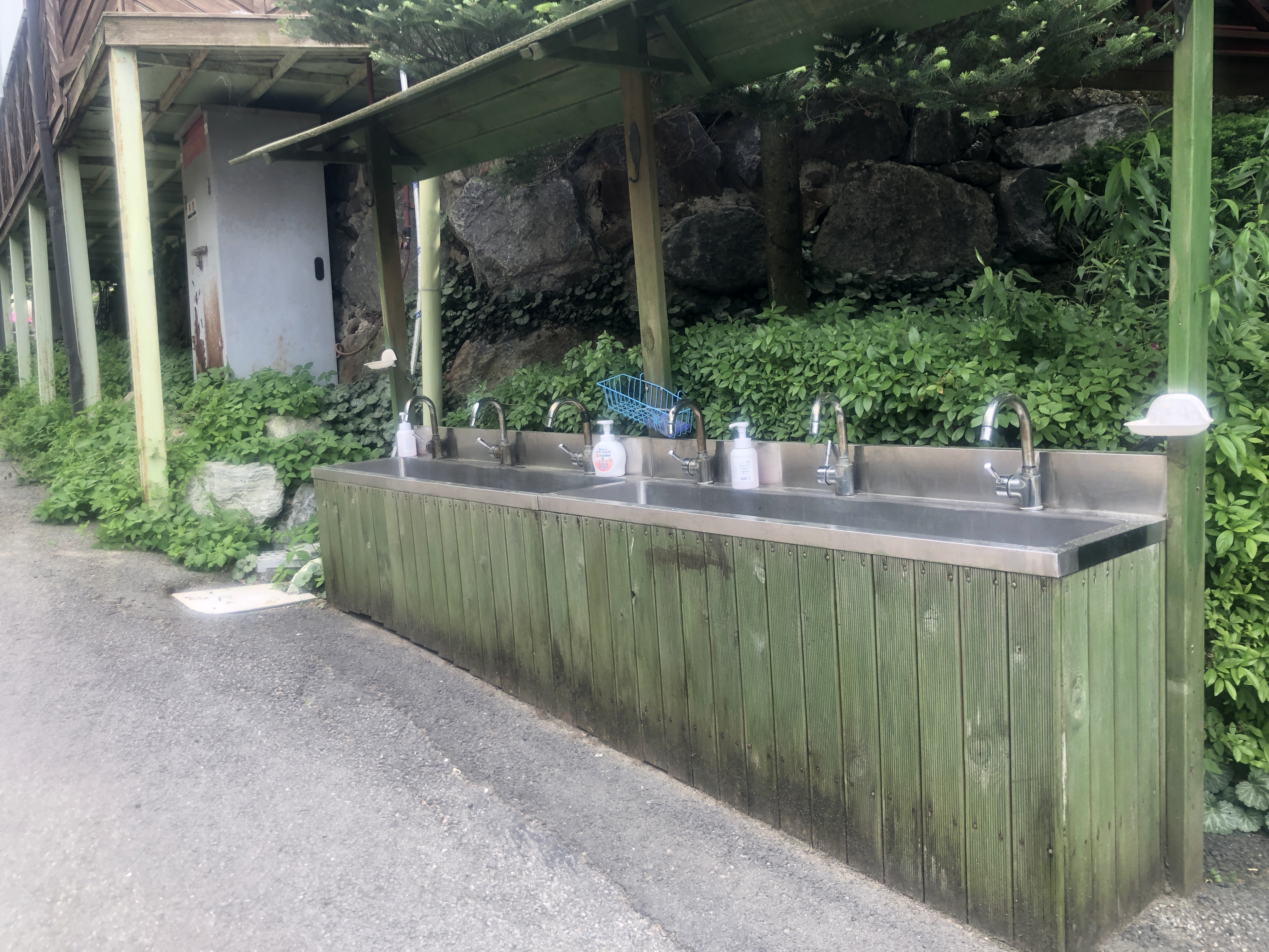 송아지 먹이주기 체험후 손을 씻고 음식 만들기를 할 수 있도록 야외에 손씻는 곳이 설치되어 있어요.
