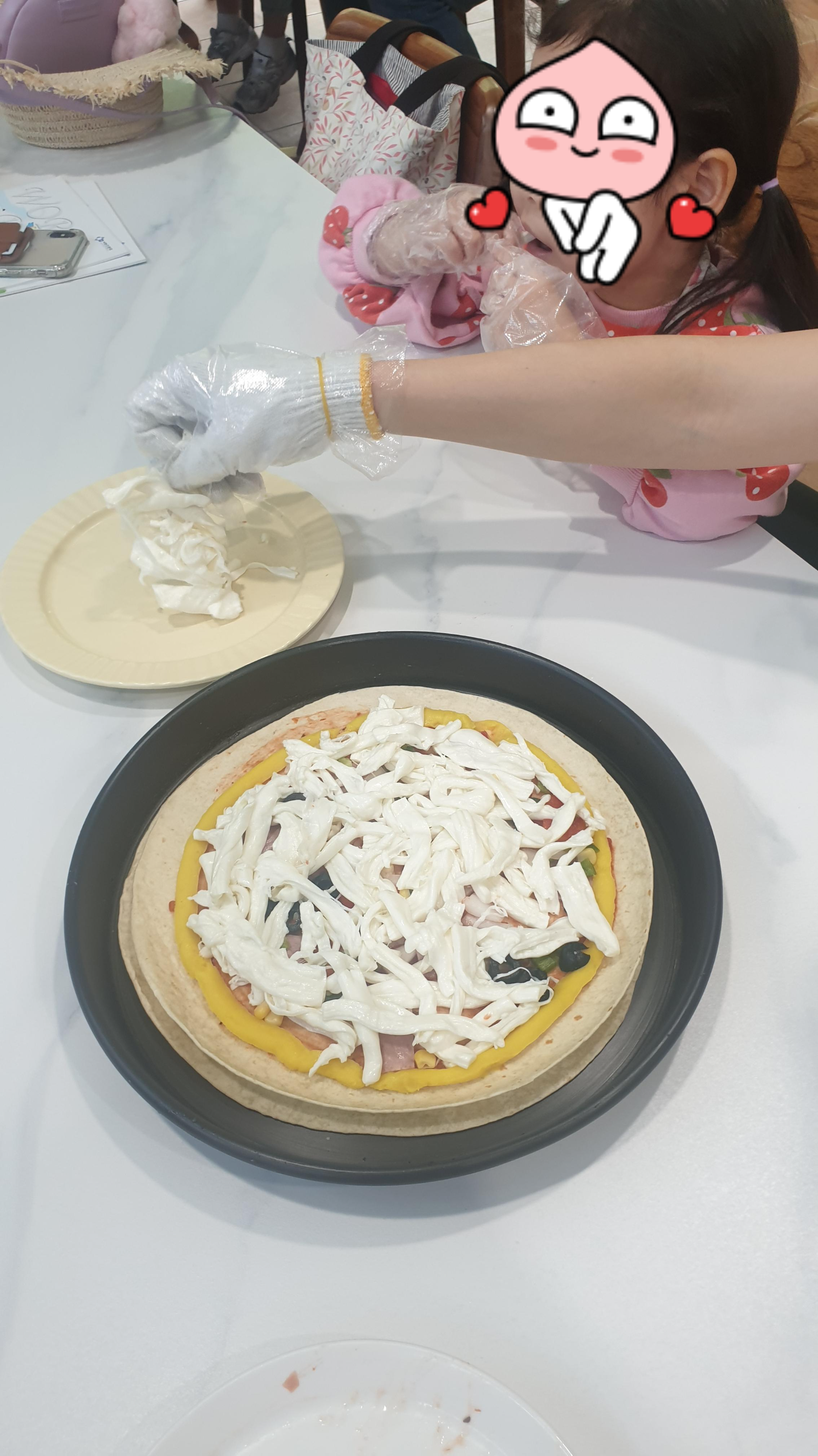만들어진 치즈를 들고 바로 옆의 피자 만들기 장소로 이동합니다.