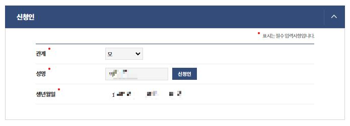 * 자녀의 정보가 아닌 신청자 본인의 정보를 입력해야 합니다.