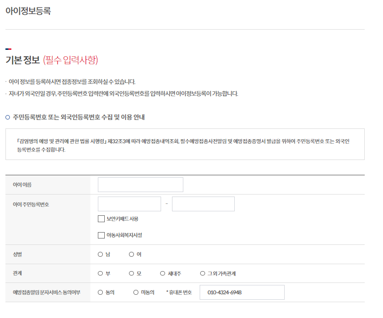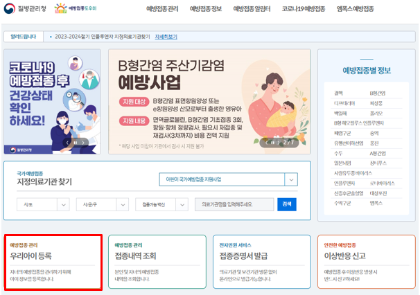예방접종도우미 사이트에 접속하셔서 자녀의 접종정보 관리할 수 있도록 '우리아이등록' 해주세요.