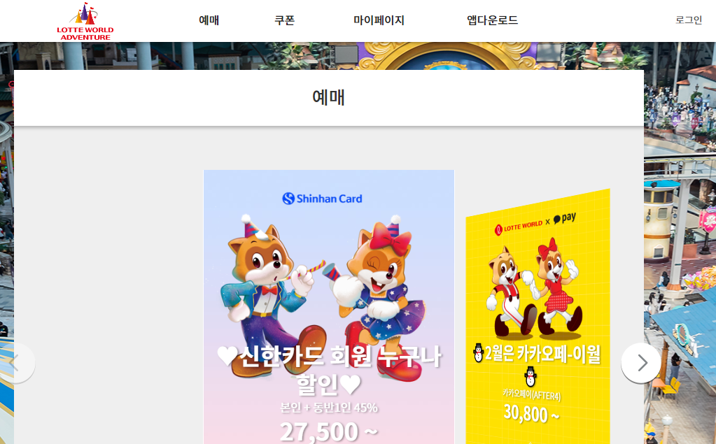 롯데월드 공홈 ,App 통한 예매 : 공홈 예매 사이트 클릭하시고 예매하시면 됩니다.