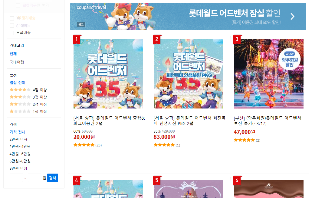 오픈마켓 티켓구매 : 쿠팡, 티몬 종합 쇼핑몰의 여행카테고리에서 구매가능.